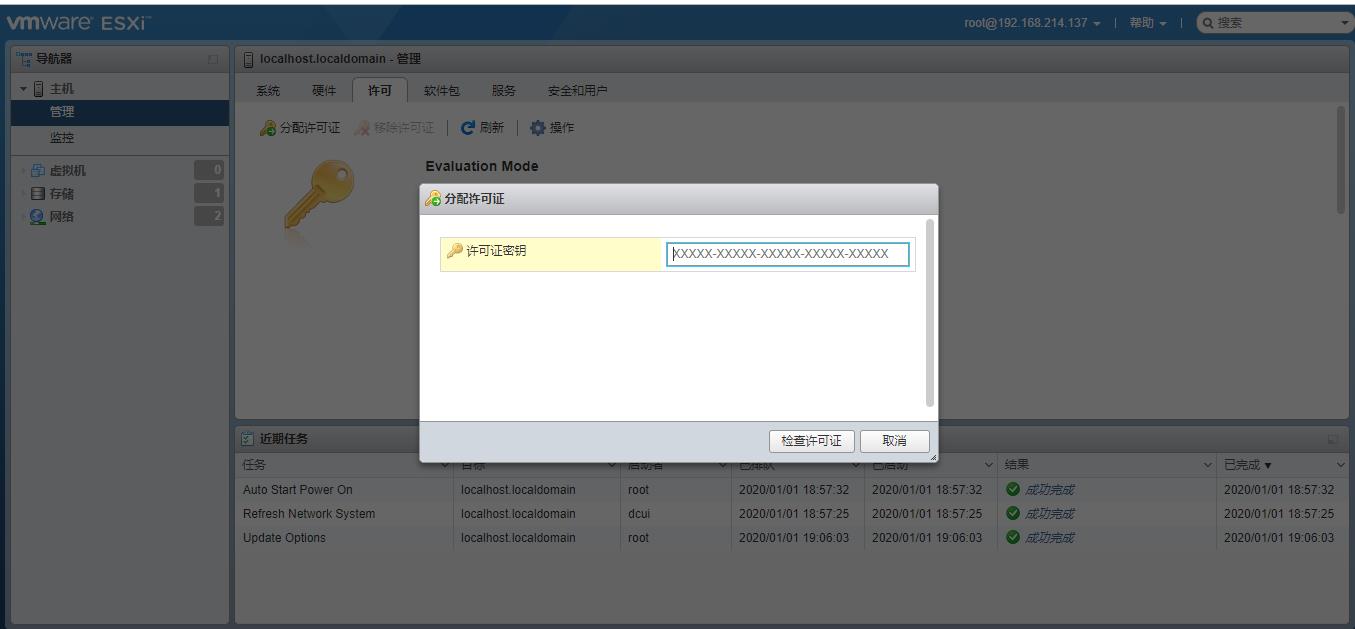 接下来我们点开左侧管理,然后点右侧许可后点击-分配许可证,在对话框中输入秘钥,如下图所示。